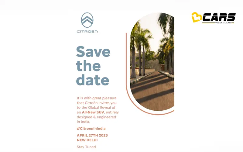 Citroen sent us a ‘Save The Date’ invite for the new, made-in-India SUV. The invite is for the “global debut of an all-new SUV, entirely designed & engineered in India”, suggesting this new SUV could go on sale in other parts of the world as well. While the details of the upcoming SUV are scarce, we expect it to share its platform and powertrains with the C3.